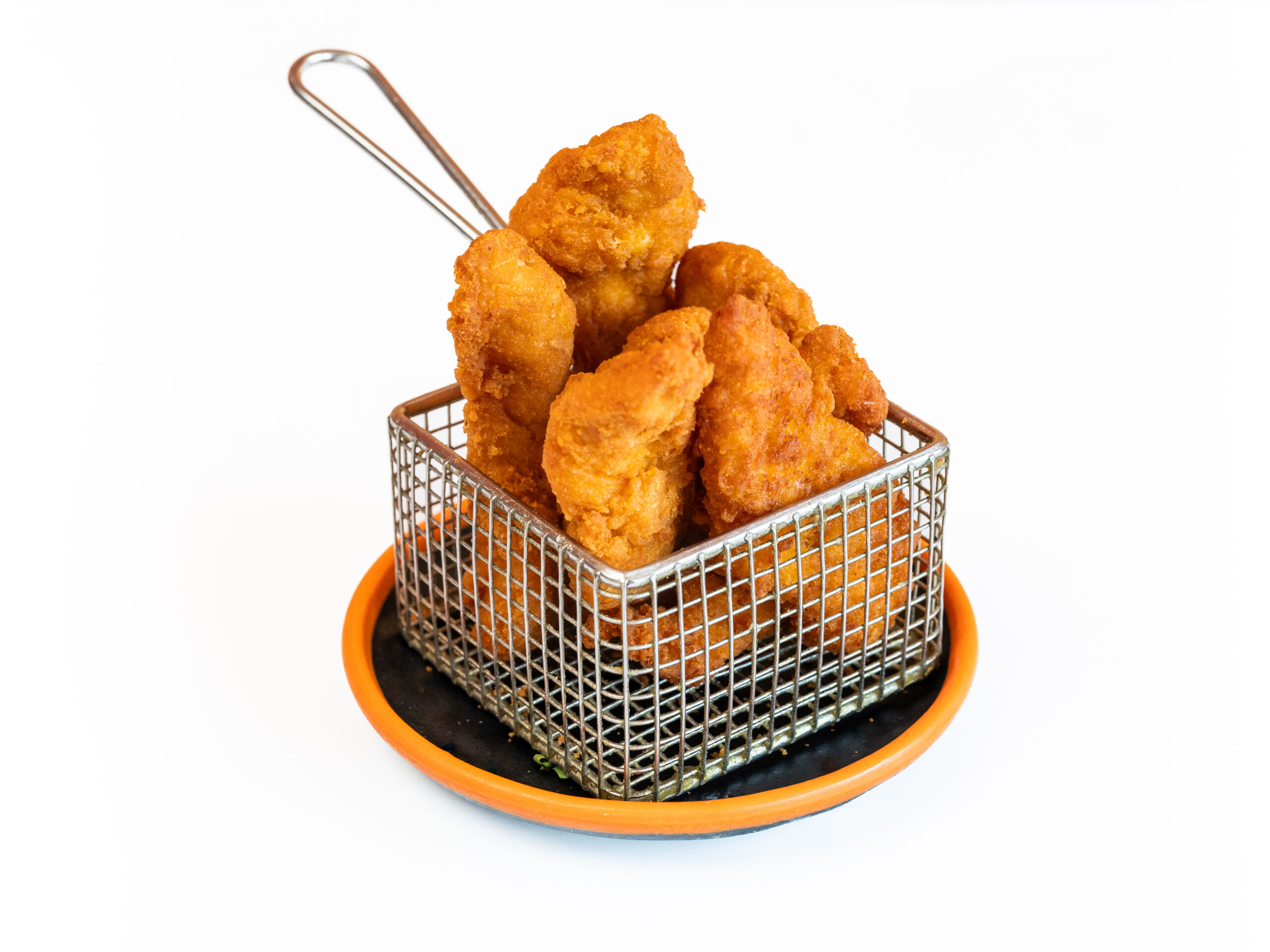 Gefrituurde snack gemaakt van kikkererwtenmeel met kip en kruiden.