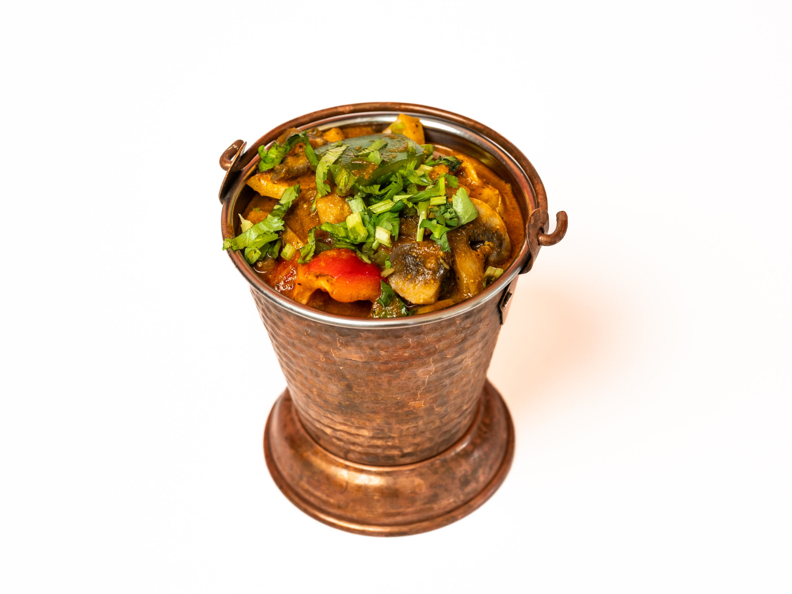 Authentieke Pakistaanse karahi (wok) met lamsvlees, tomaten, paprika en knoflook.