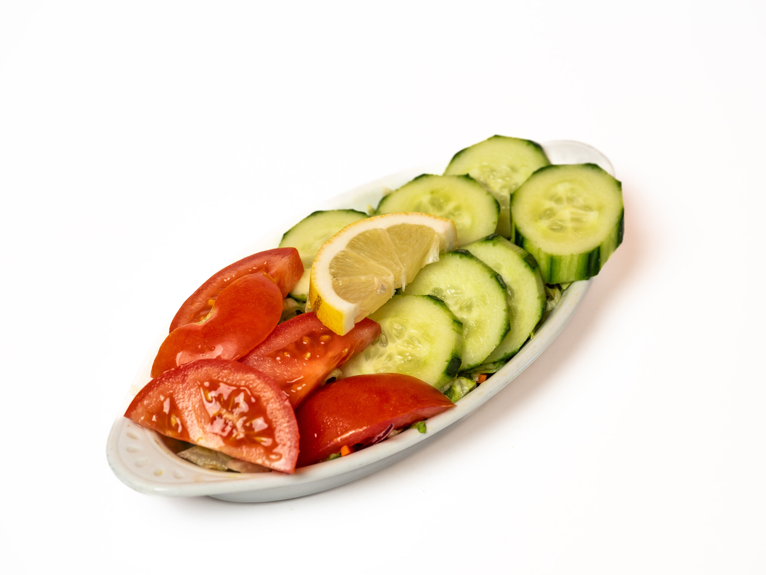 Ijsbergsla, komkomer, tomaat, appel.