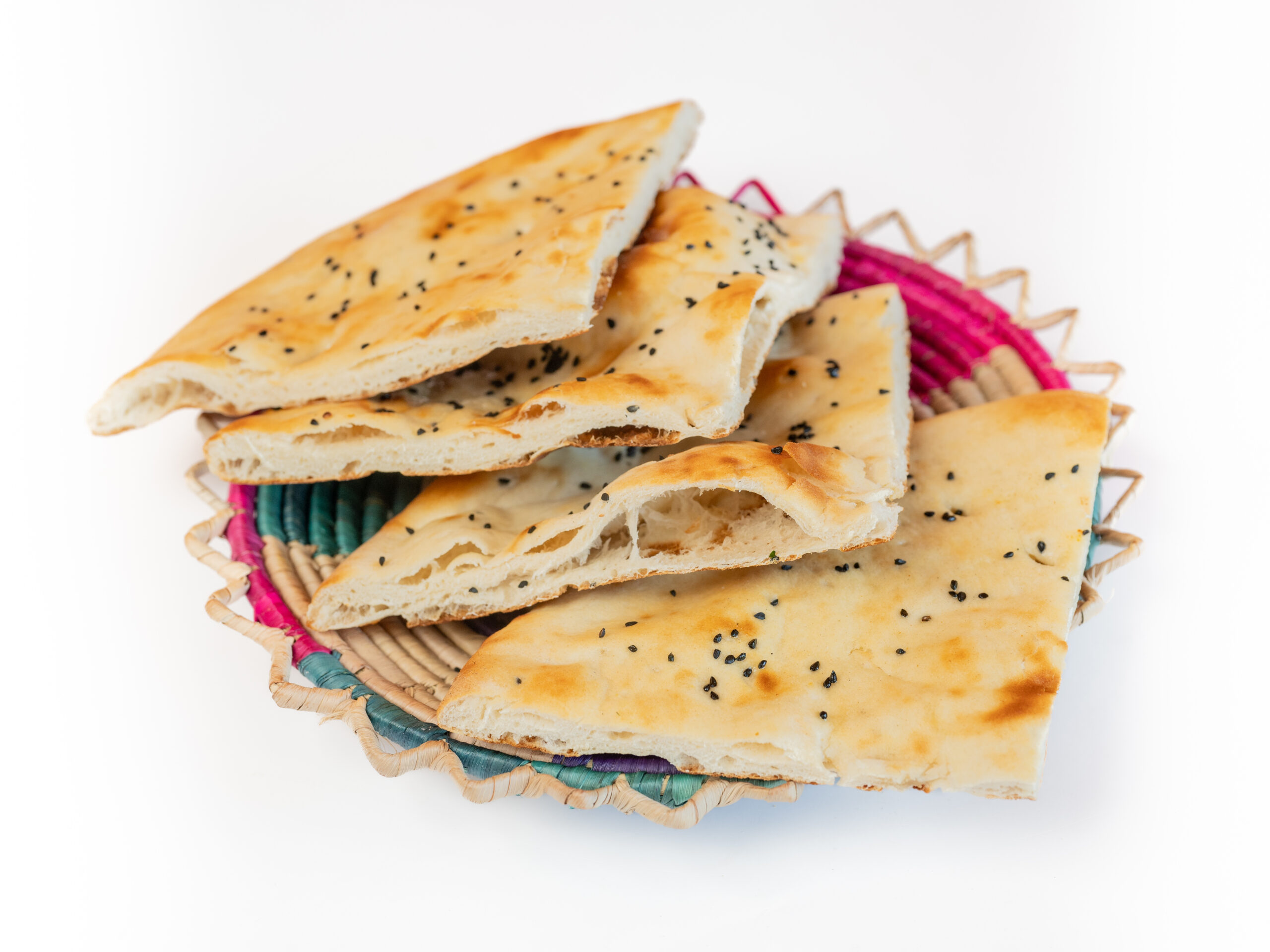 Plat brood gebakken in de tandoor oven met zwarte zaden.